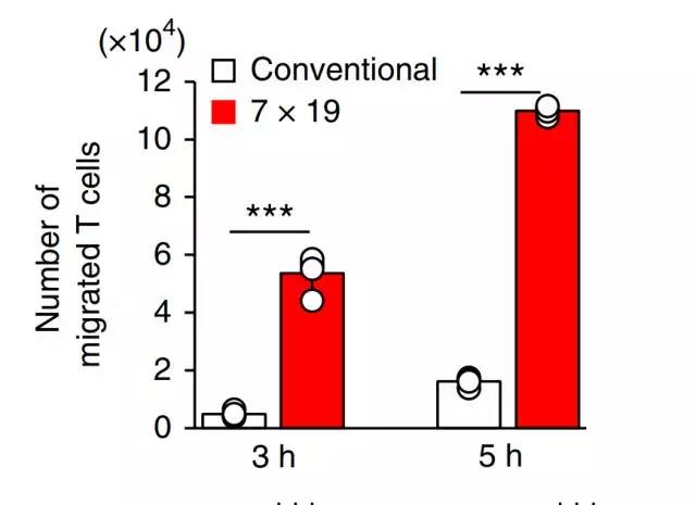 在體外實驗中,Tamada教授發(fā)現(xiàn),表達(dá)IL7和CCL19的新一代CAR-T,增殖能力是普通CAR-T的兩倍,而在井間遷移試驗中募集免疫細(xì)胞的能力是普通CAR-T的至少5倍。同時,IL7受體抑制劑可以完全消除新一代CAR-T被增強的增殖能力,而CCL19受體抑制劑同樣也可以完全消除新一代CAR-T的募集免疫細(xì)胞的能力。