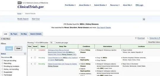 截止目前為止,美國(guó)國(guó)立衛(wèi)生數(shù)據(jù)庫(kù)(ClinicalTrials.gov)收錄的間充質(zhì)干細(xì)胞治療腎臟疾病的臨床試驗(yàn)有兩百多項(xiàng)。
