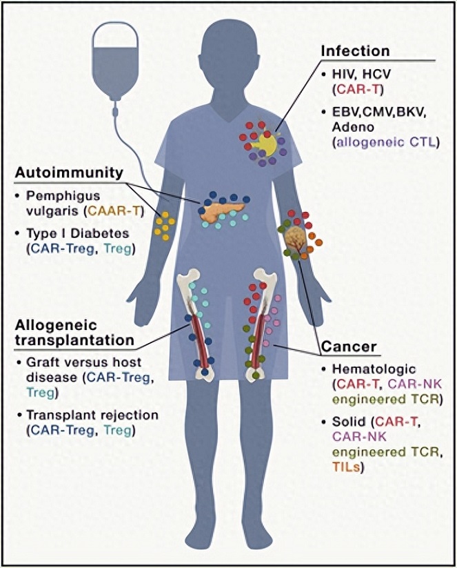 圖1.免疫細(xì)胞治療人類疾病的療法[1]